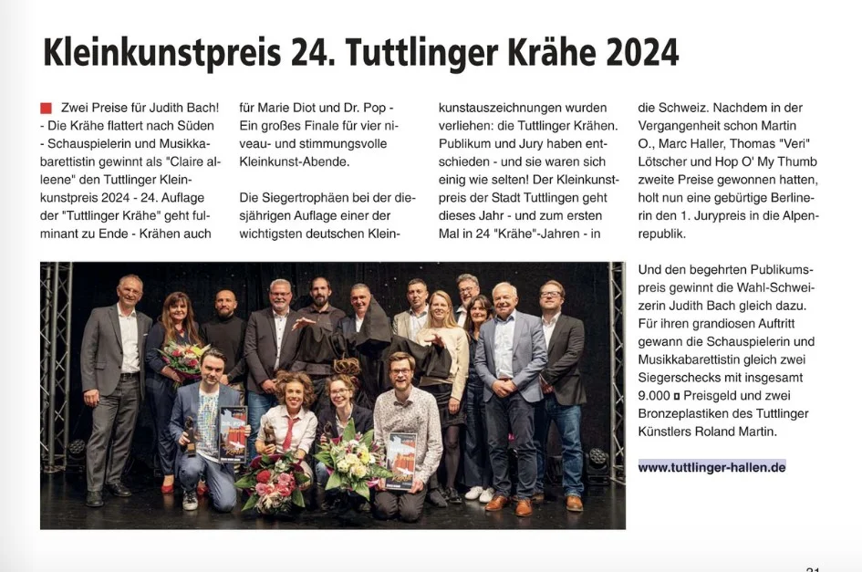 Für Michael Baur, Geschäftsführer der Tuttlinger Hallen, war Bachs Auftritt bei der "Tuttlinger Krähe" „wahrscheinlich das Beste, was jemals eine Frau in 24 Krähe-Jahren auf die Bühne der Angerhalle gebracht hat.“